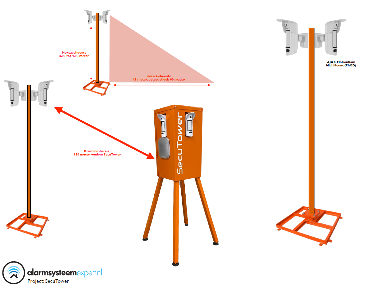 SecuTower Neigbarer quadratischer Aluminium-Kameramast 4 Meter RAL-2004